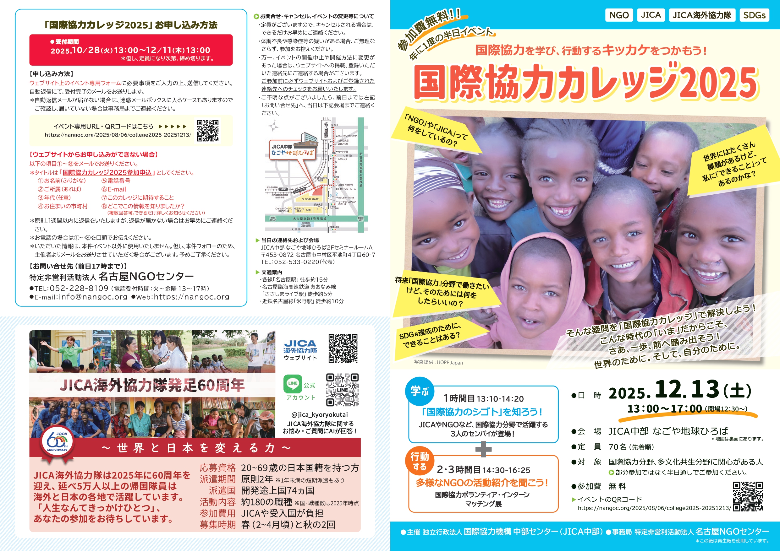 ・ご不明な点がございましたら、前日17時までは「名古屋NGOセンター」へ、当日は「JICA中部」までご連絡ください。